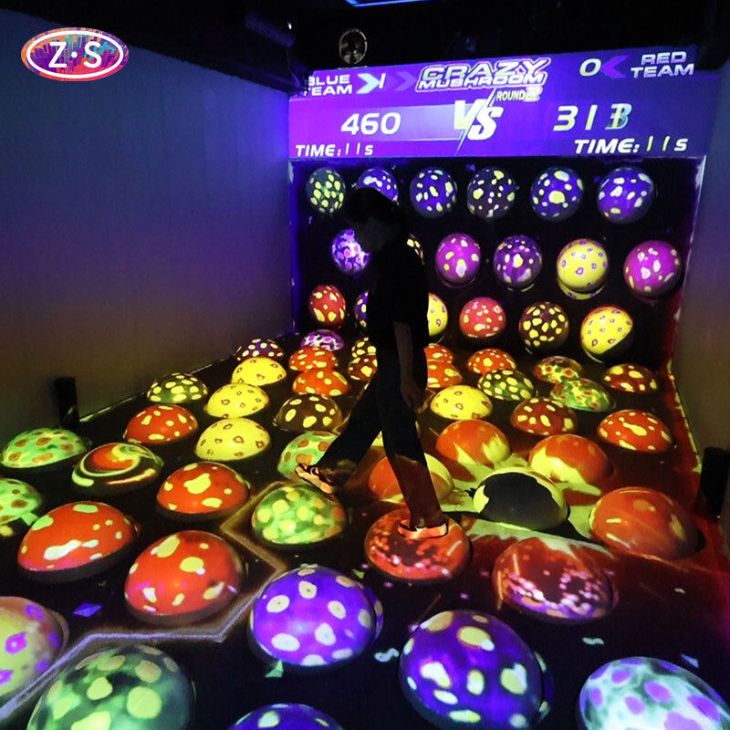 Interactive Ball Playground Game--this comprehensive motion-activated gaming system offers three educational experiences: Crazy Mushrooms, Crazy Math, and Crazy Fruits. Children physically interact with projected elements, scoring points through strategic movement and quick decisions. The high-performance 3800-lumen laser projector with DLP technology ensures excellent visibility in different lighting conditions. Designed for simple installation and remote operation, it's perfect for children's playgrounds, sports centers, and family entertainment venues looking to combine physical activity with cognitive development.