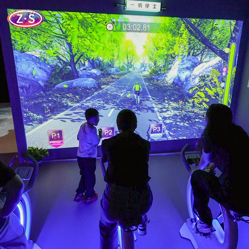 Dynamic Cycling transforms traditional indoor cycling into an immersive, tech-driven adventure. By integrating 4000-lumen laser projection, users are transported to vibrant virtual landscapes, from mountain trails to urban cityscapes. The electromagnetic resistance system dynamically adjusts to simulate real-world terrains—uphill climbs demand more effort, while downhill coasts offer a thrilling, effortless ride. This realistic feedback ensures every session feels authentic, keeping users engaged and motivated. The system supports multiplayer racing, allowing up to four participants to compete in real-time. On-screen progress indicators track speed, distance, and calories burned, while real-time rankings fuel friendly competition. Optical sensors detect pedal speed with precision, ensuring accurate performance metrics. Safety is prioritized with an emergency stop button and one-button central control for seamless operation. Ideal for gyms, studios, and entertainment venues, Dynamic Cycling makes fitness social and fun. Its user-friendly design requires minimal setup, making it perfect for schools, corporate wellness programs, and recreational centers. By blending physical activity with digital entertainment, it appeals to teens and adults seeking an active, engaging lifestyle.