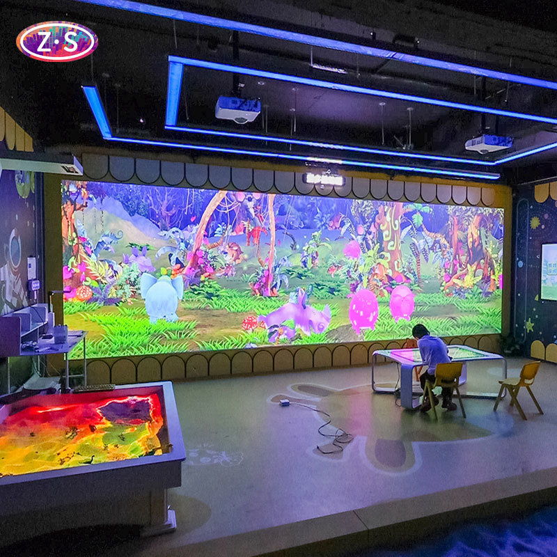 The system combines cutting-edge projection technology with intuitive gameplay that appeals to all ages—children create artwork either digitally on the 43-inch touch table or traditionally on paper, then watch their creations come alive as 3D animations on large projection surfaces.