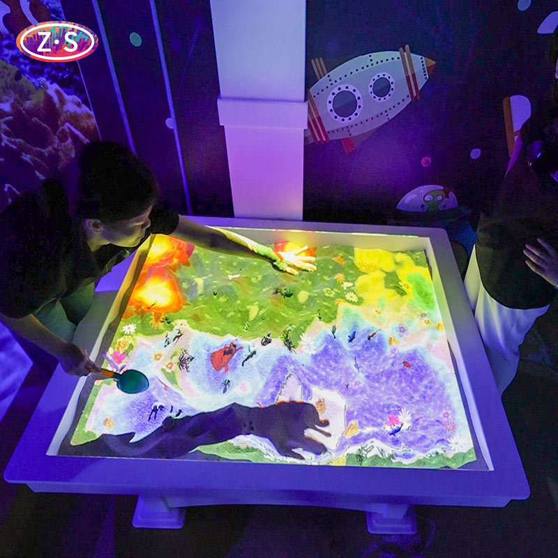 The AR Sandbox Interactive Projection Table for STEM Education and Family Fun combines cutting-edge augmented reality technology with hands-on sand play to create an engaging learning experience for all ages. Powered by an interactive projection system and a custom depth sensor, the table transforms real sand into dynamic landscapes where mountains rise, rivers flow and ecosystems evolve in real time, helping users explore geography, earth science and basic physics concepts naturally.
