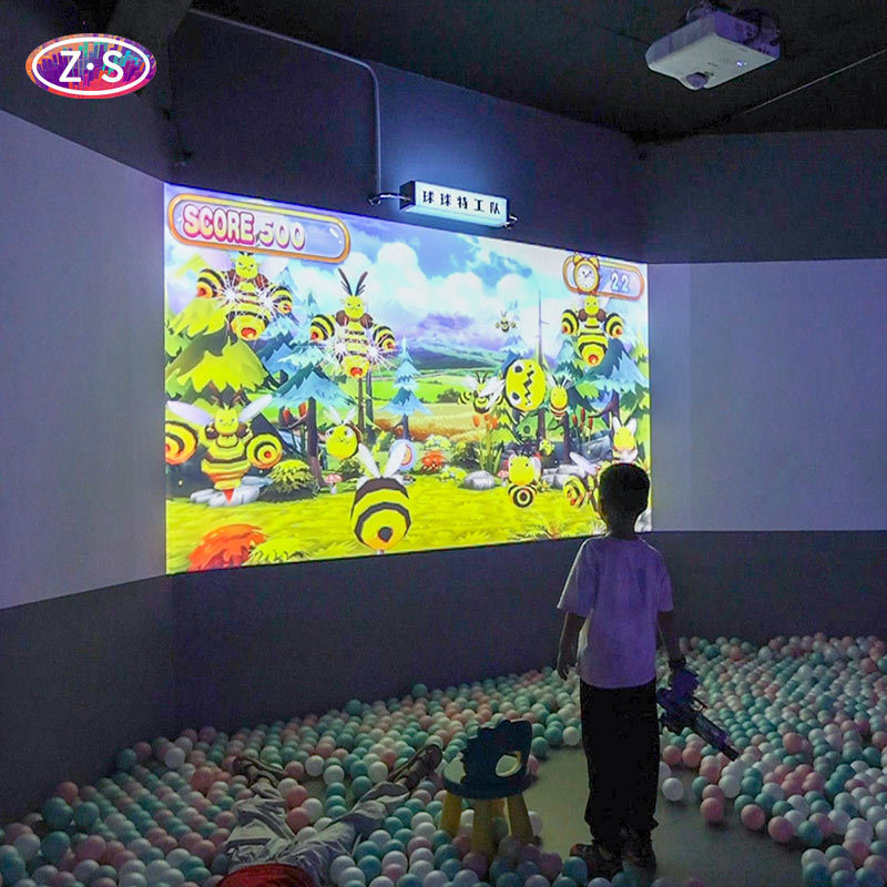 Interactive games are projected directly onto walls, transforming unused vertical spaces into energetic activity zones without occupying valuable floor area. Players interact naturally by throwing balls at animated targets, encouraging physical movement, hand eye coordination, and group participation. Supporting multi player and multi ball interaction, the system is ideal for social play and competitive challenges. With 30 built in games across sports challenges, adventure themes, reaction training, and skill based gameplay, it offers high replay value and ongoing content updates.